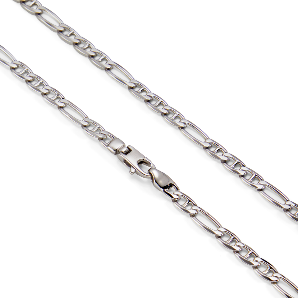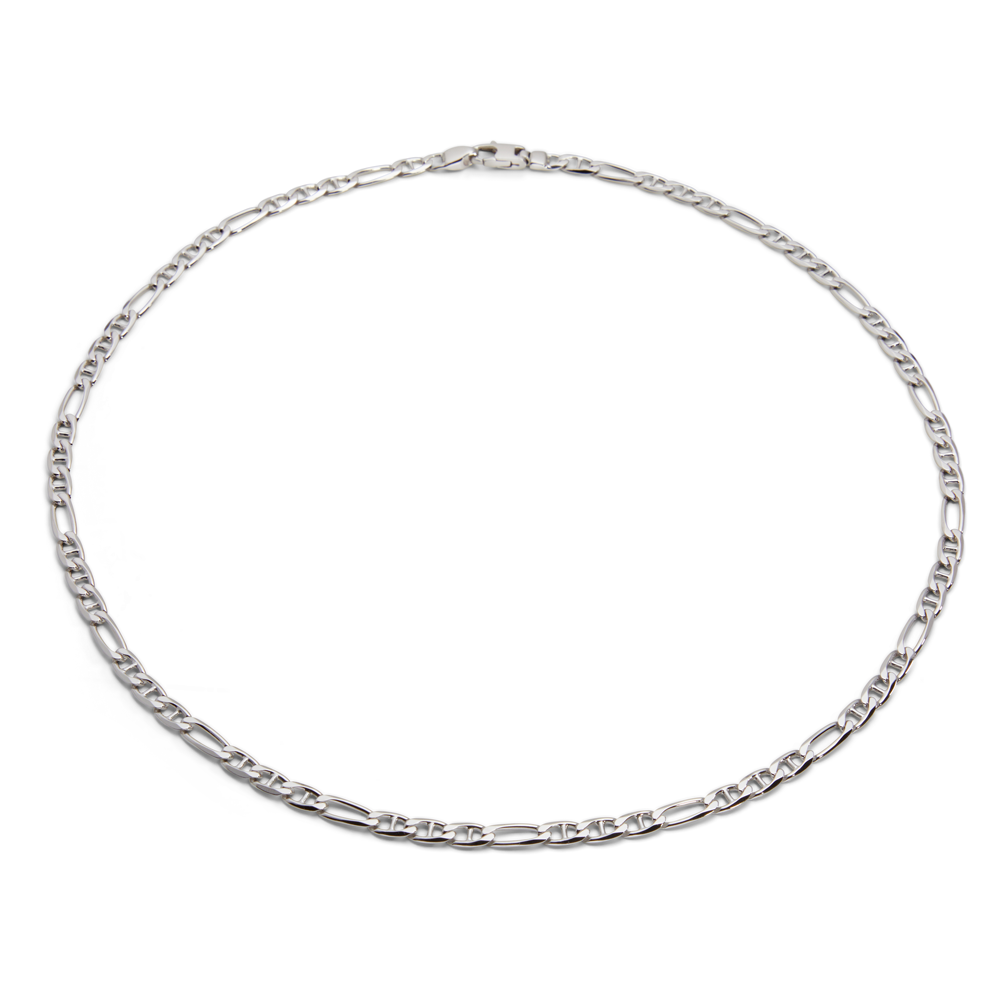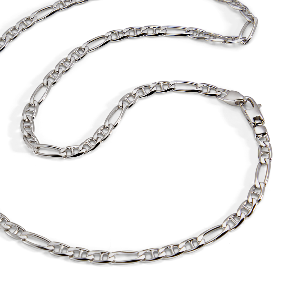 Our Anchor Figaro necklace is perfect to be worn by itself or layered with other chains for an edgier style. The hallmarked silver necklaces are available in multiple lengths and have been rhodium plated to prevent tarnishing.