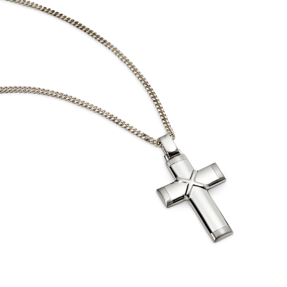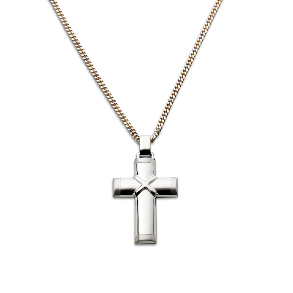 Our beautiful sterling silver cross pendant features crisp detailing and beautiful mirror finishing. Fully hallmarked in the UK, the pendant has been rhodium plated to prevent tarnishing.