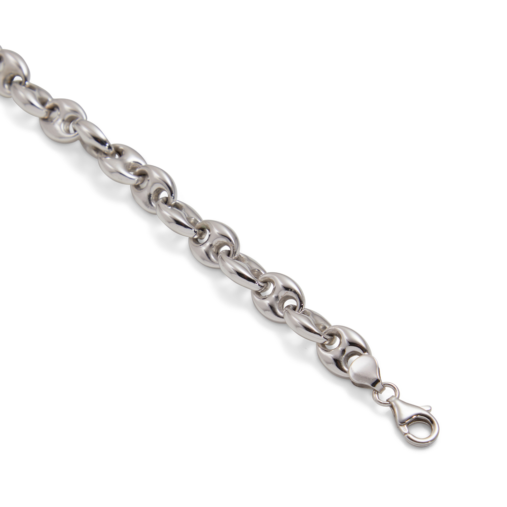The eye catching Cushioned Marine bracelet, made from an incredibly high quality hollow chain is made to perfection by Saturno. Featuring superb mirror finishing, the bracelet has been rhodium plated to prevent tarnishing.