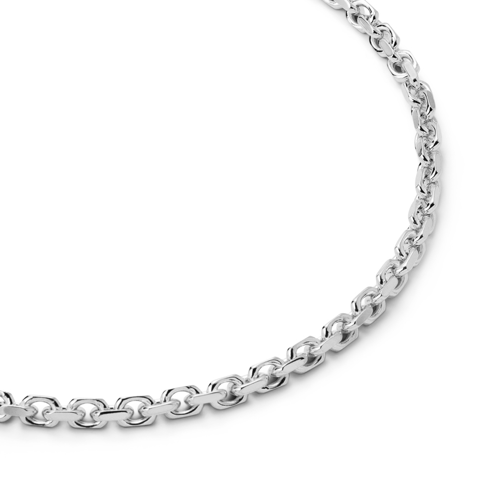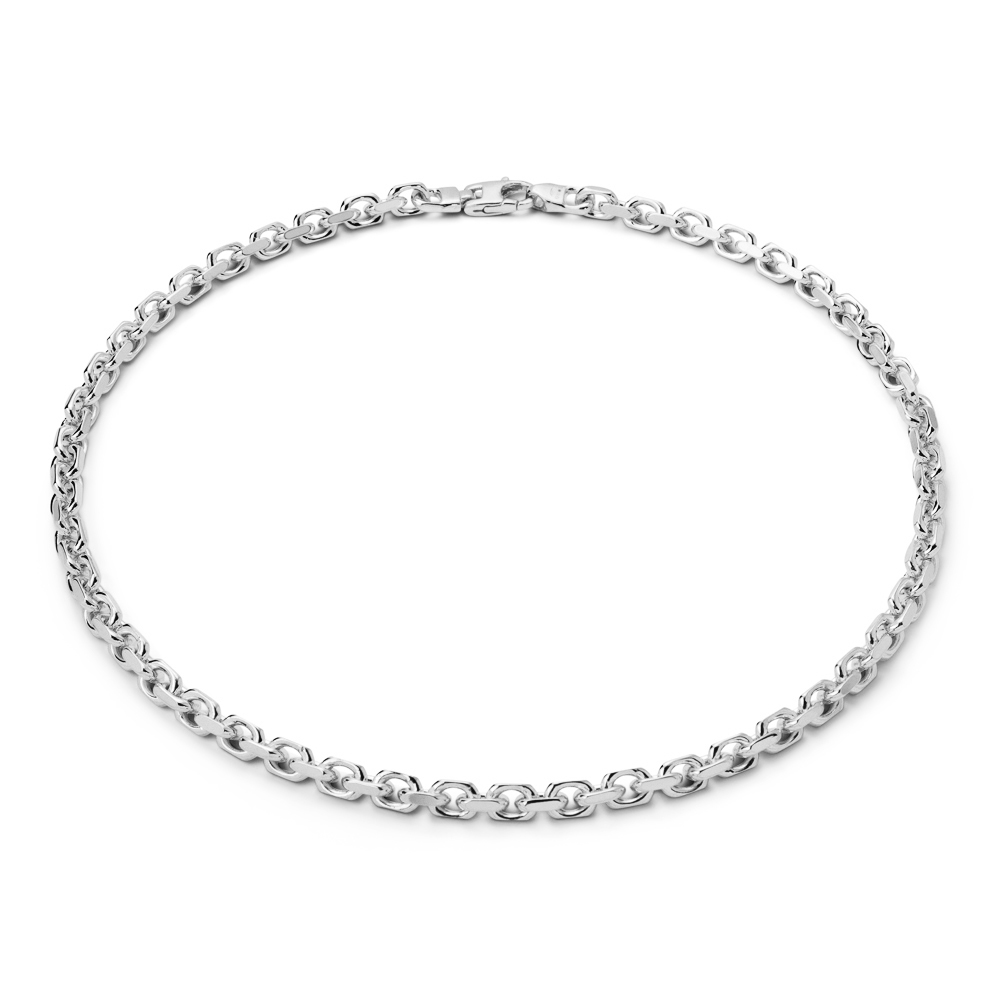 Hand-finished in sterling silver with a layer of rhodium plating, this necklace features a diamond-cut design that pairs with the matching bracelet. Timeless and elegant, it is a luxurious statement piece for any occasion.