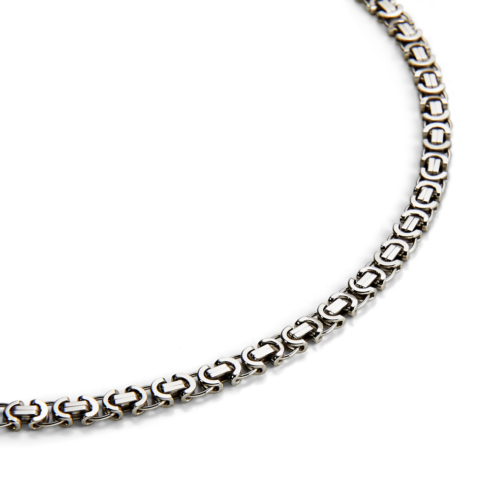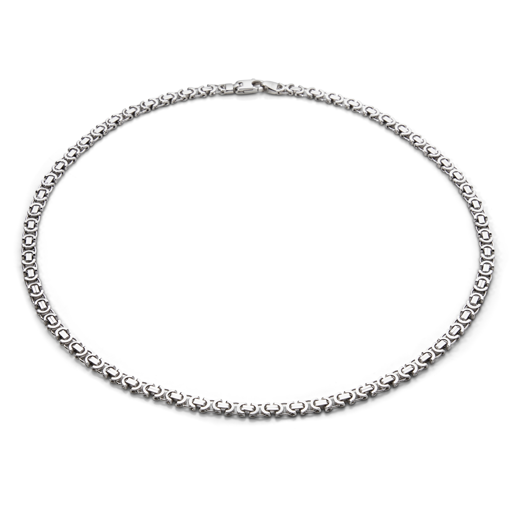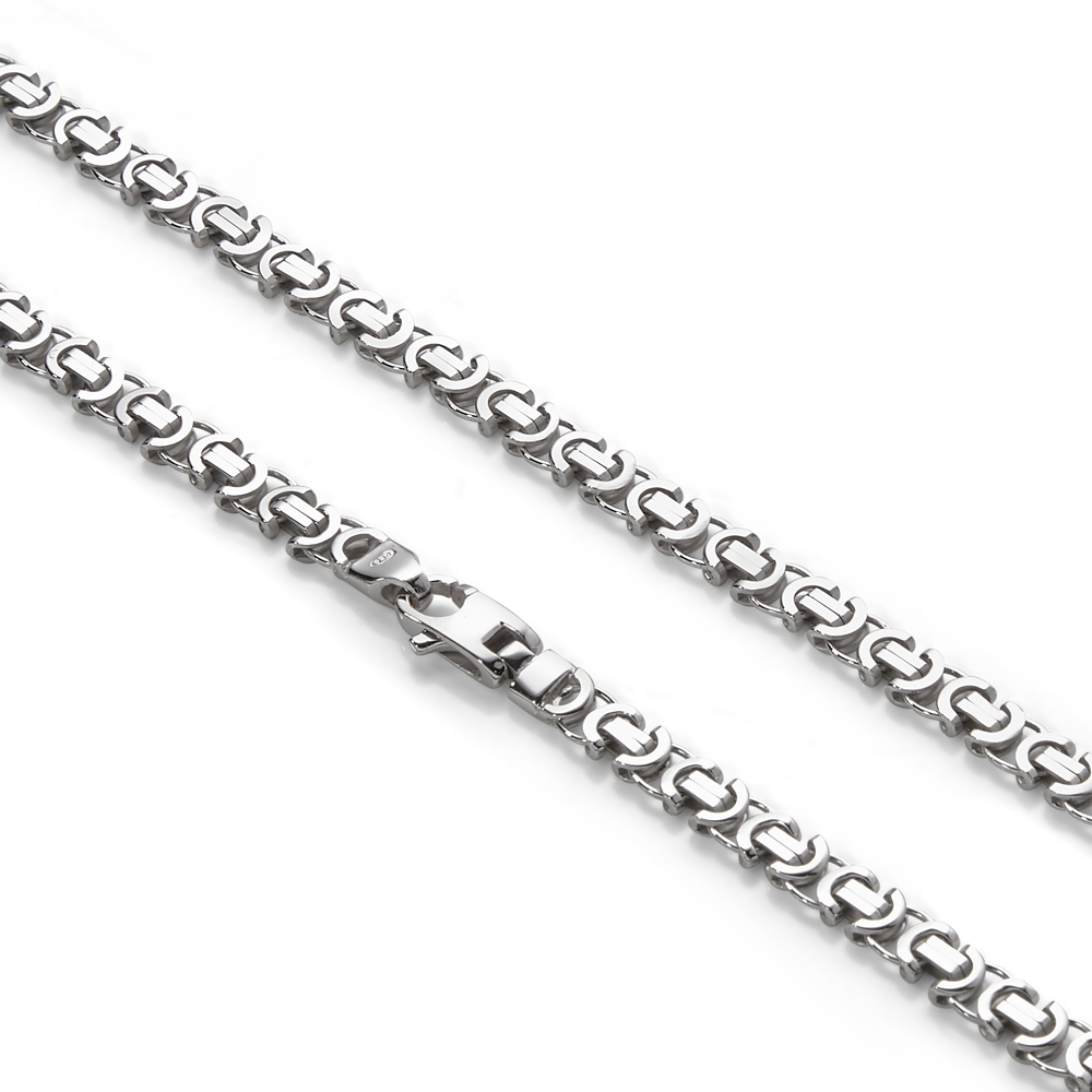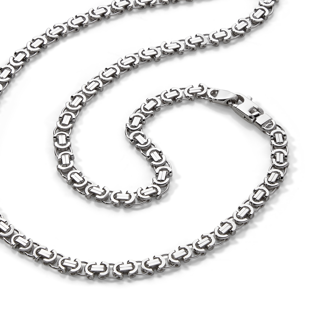 The Etruscan necklace is a real statement piece, featuring a bold style of chain with superb finishing throughout. The Saturno necklace is available in a range of lengths and has been rhodium plated to prevent the silver from tarnishing.