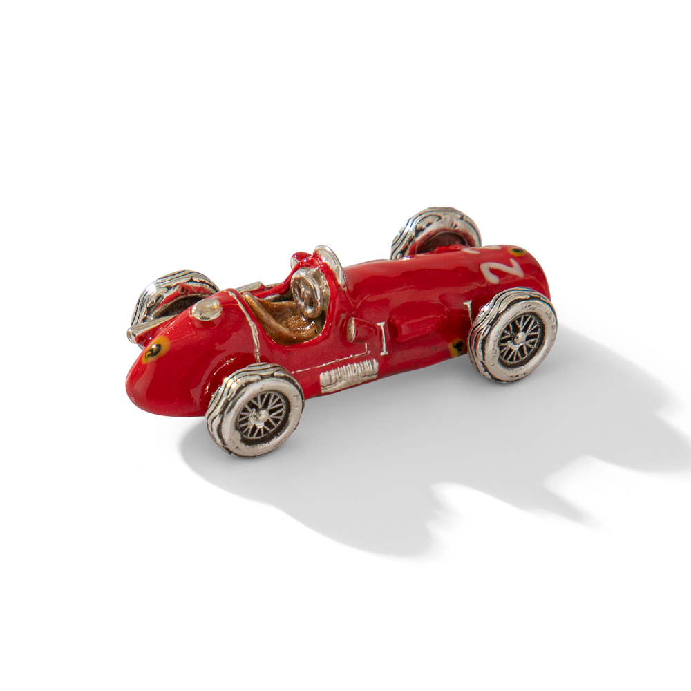 A striking tribute to Italian automotive excellence, this handcrafted Ferrari F1 212 reproduction is brought to life in fine silver and rich enamel by Saturno of Italy. Each piece is individually made with precision and care, combining traditional craftsmanship with timeless design. Lacquered to resist tarnishing and preserve its brilliant finish, this high-quality ornament is both a collector’s piece and a refined decorative accent. Presented in a signature gift box, it’s the perfect gift for Ferrari enthusiasts and lovers of fine Italian artistry.