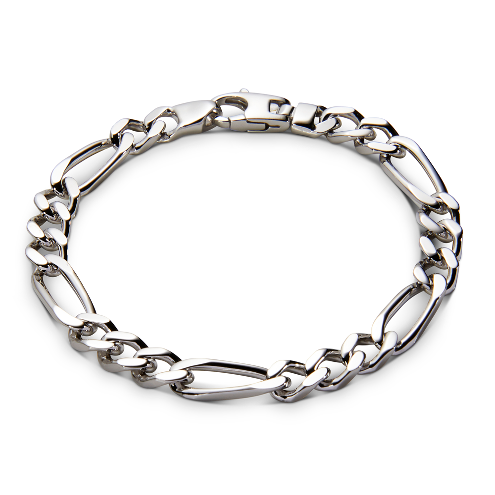 There are many versions of the Figaro chain on the market, but few of the quality of Saturno. Hand finished in sterling silver, the bracelet carries full UK hallmarks and is rhodium plated to prevent the silver from tarnishing.