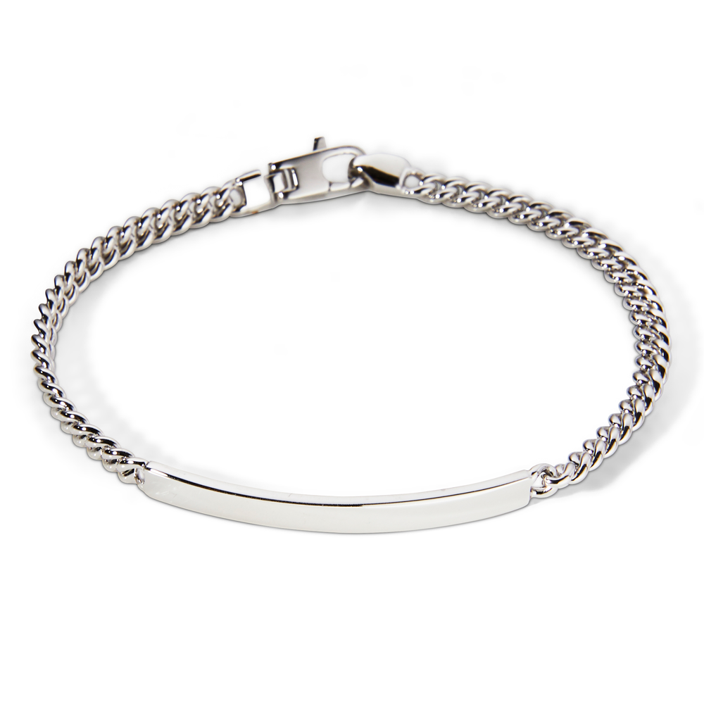 The Forzatina is the simplest of i.d. bracelets which is made to perfection. Featuring beautiful mirror polishing, the bracelet is UK hallmarked and rhodium plated to prevent tarnishing.