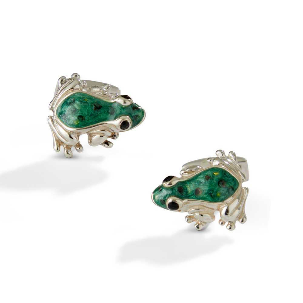 Add a playful yet refined touch to your attire with these Frog Cufflinks by Saturno. Handcrafted in Italy from sterling silver and detailed with vibrant, hand-applied enamel, these cufflinks are a celebration of bold style and fine craftsmanship. Each frog is full of character and detail, making these cufflinks a unique gift for nature lovers, collectors, or anyone who appreciates accessories with personality.