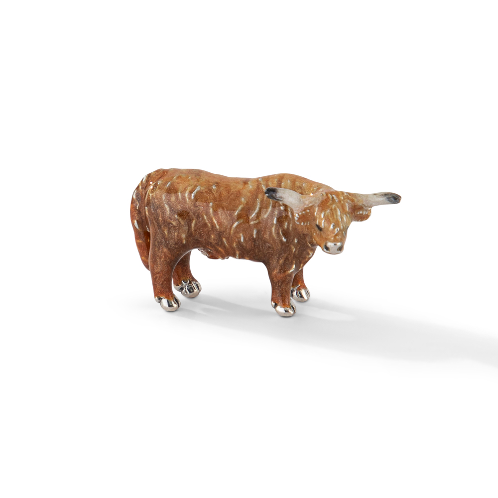 The gorgeous highland cow may only be tiny but is full of detail and quality. These ornaments make for highly unique gifts and are loved all around the world. Each item is hand enamelled by skilled artisans, using hypodermic needles to create beautiful details in tiny areas. The cow is hallmarked in the UK and is supplied in a luxurious gift box. The item is lacquered and should be cleaned by using a soft cloth.