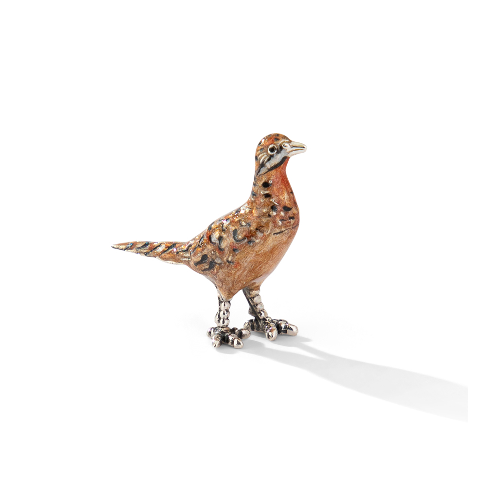 Delicate, detailed, and full of charm, this Hen Pheasant Miniature Ornament by Saturno is a beautiful example of fine Italian craftsmanship. Handmade in Italy from sterling silver and finished with rich, hand-painted enamel, it captures the natural grace of the pheasant in exquisite detail. Perfect as a luxury trinket, stocking filler, or a thoughtful keepsake, this miniature is both elegant and collectible.