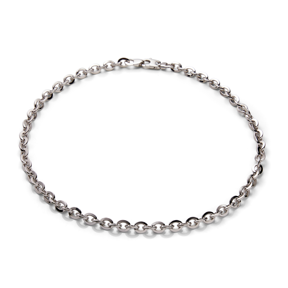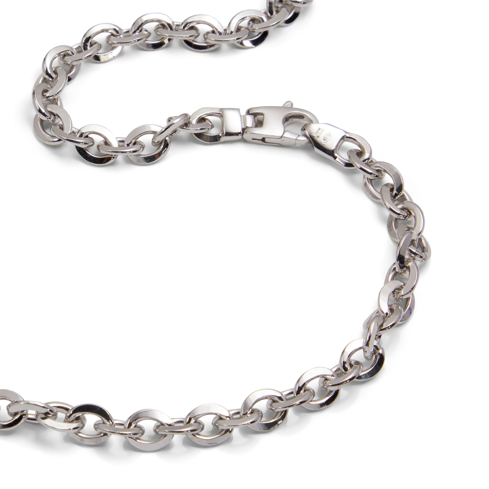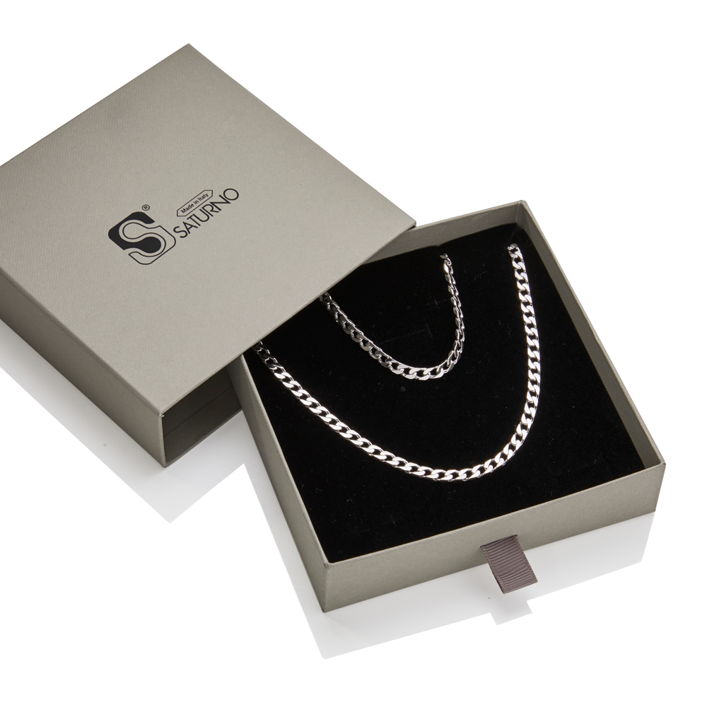 The sterling silver Rolo necklaces are top quality, made from the finest chain and fitted with Saturno’s exclusive ends and closures which makes them the market leader in their field. Available in a choice of 2 lengths, each piece is rhodium plated to prevent tarnishing.