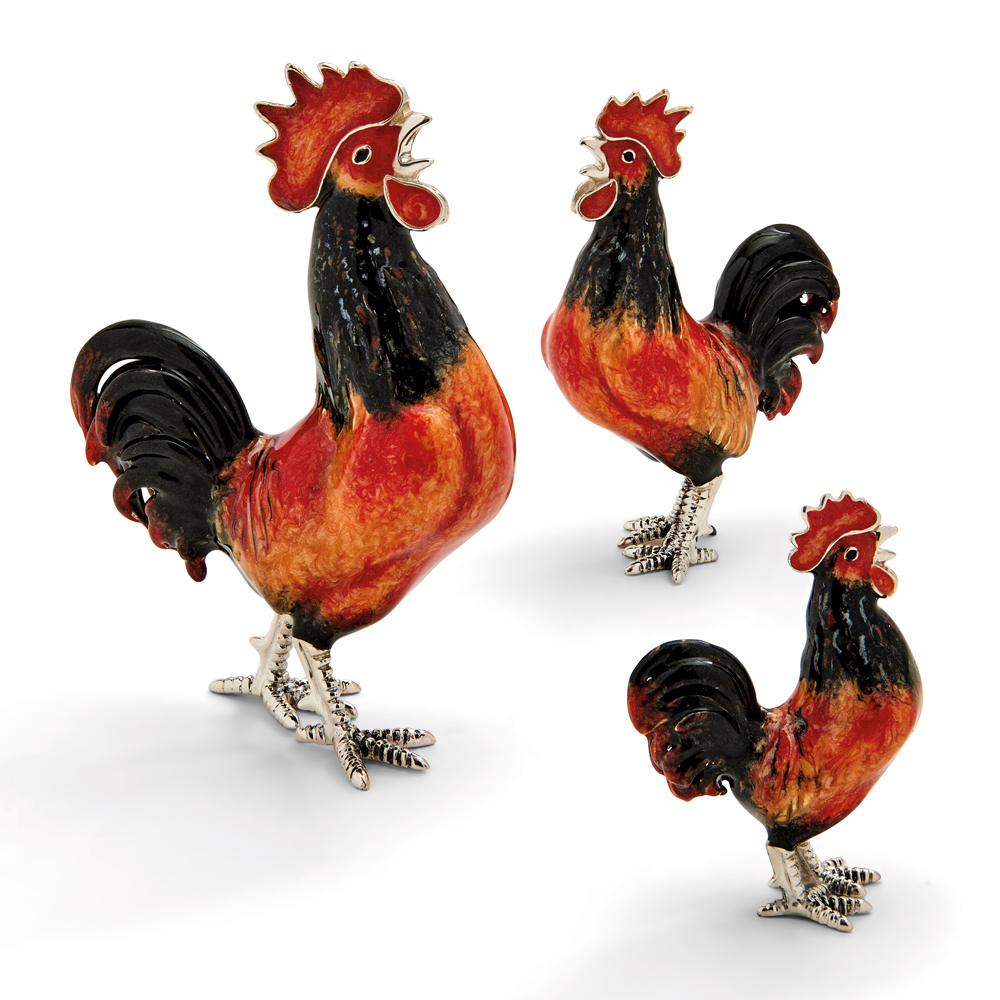 These amazingly colourful roosters have been brought to life in sterling silver by the artisans of Saturno. Available in a choice of 3 sizes, each piece is completely handmade and features incredible detailing throughout. Each item has been lacquered to prevent the ornament from tarnishing, and the piece therefore only needs a wipe with a soft cloth from time to time to keep in pristine condition. Each item is supplied with a UK hallmark and is presented in a luxurious gift box.